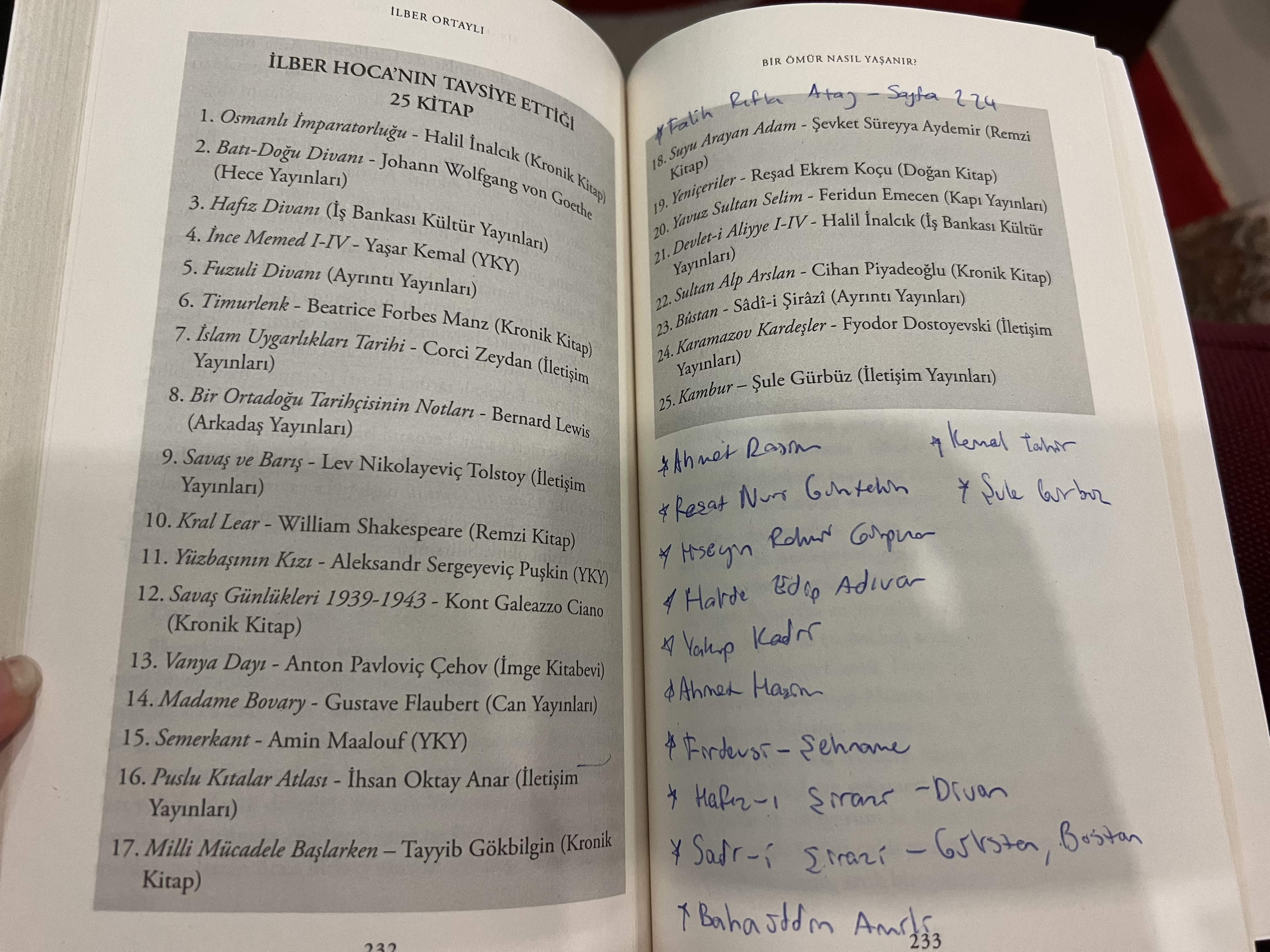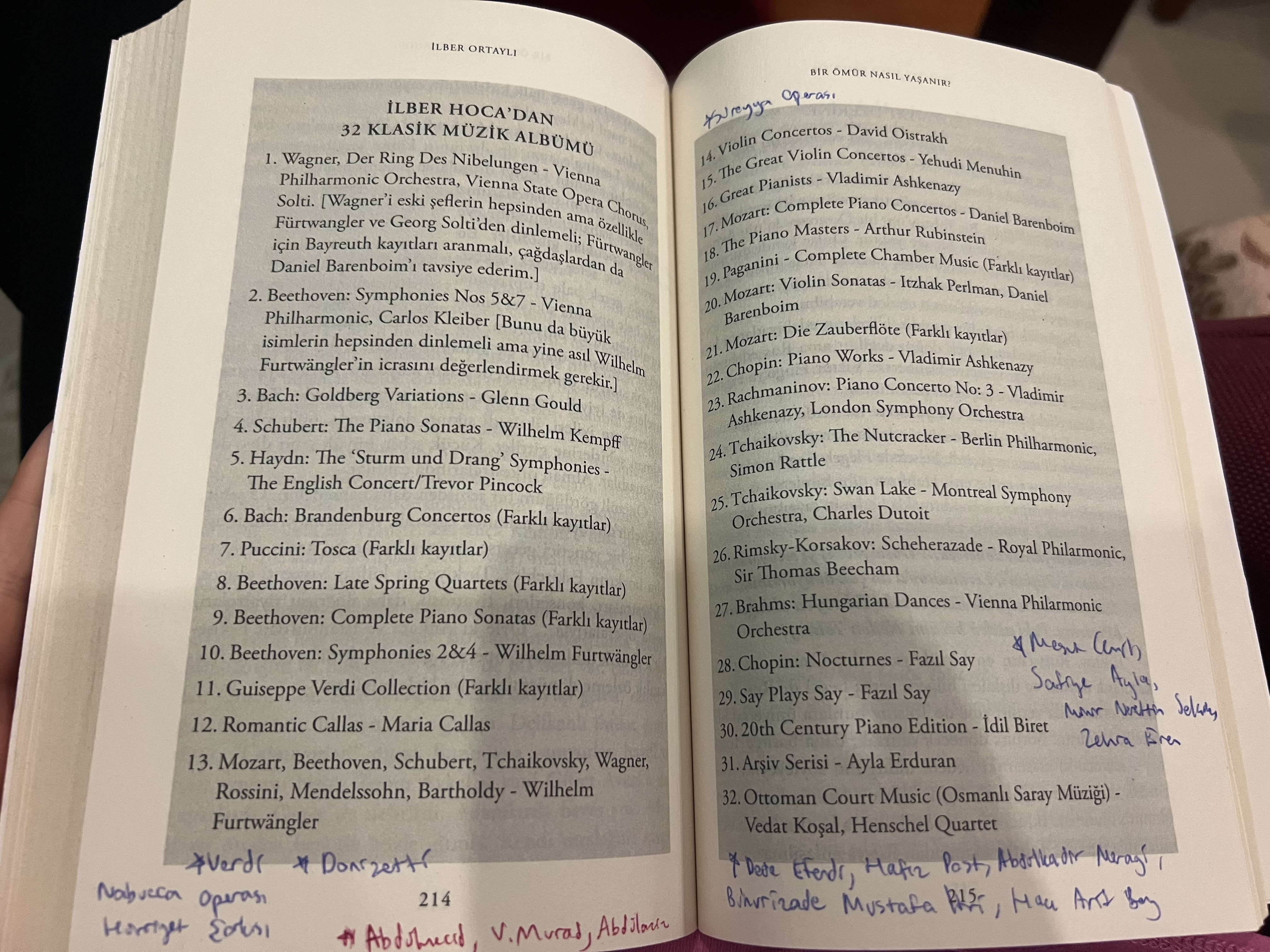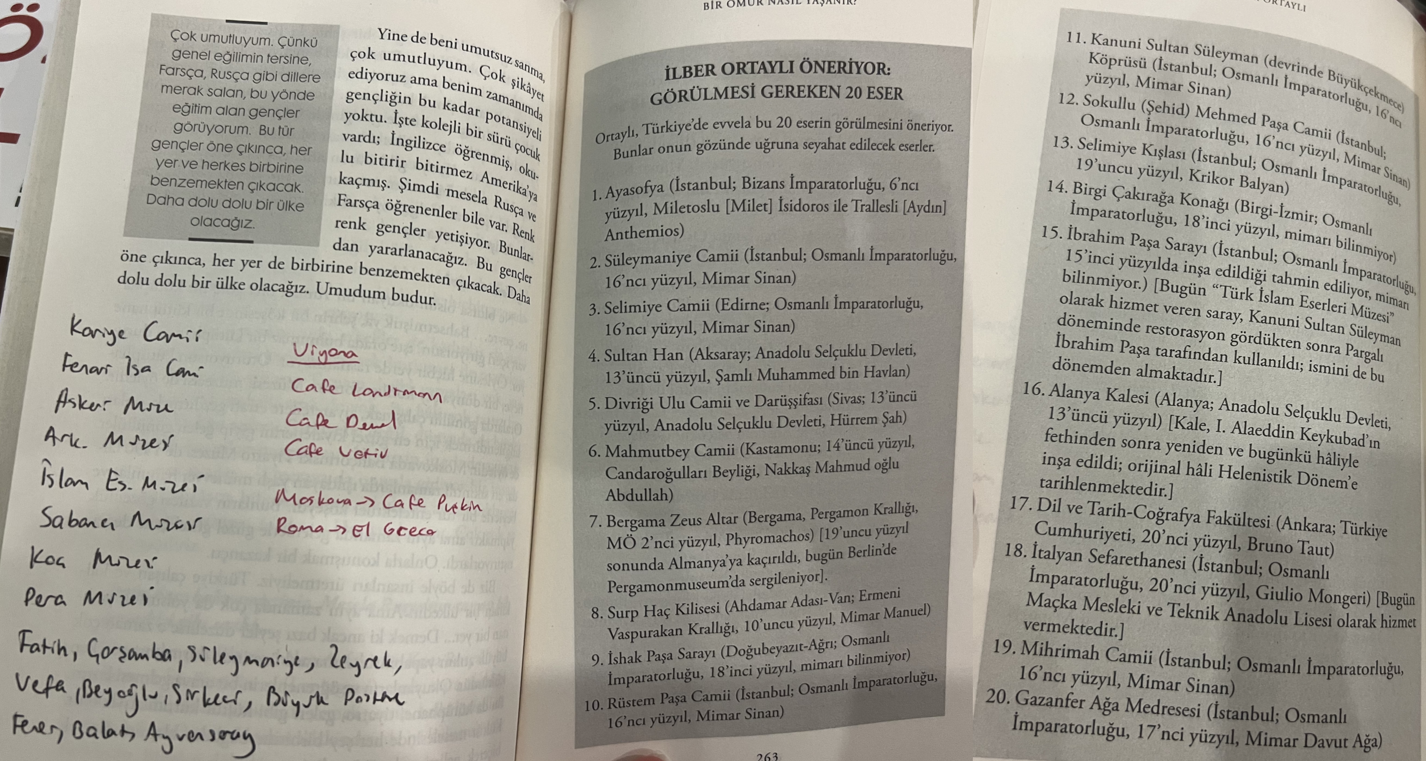 • Ortaylı’nın tavsiye ettiği: Filmler – Klasik Müzik Albümleri – Kitaplar – Türkiye’de Görülmesi Gereken Mimari Eserler – Müzeler